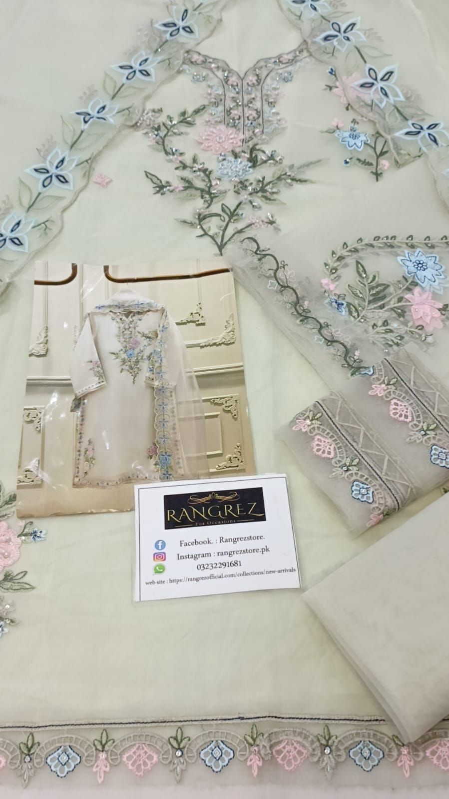 organze fully heavy alternet embroidered spengle work front with fully hand emblishment adha work with embroidered daman lace