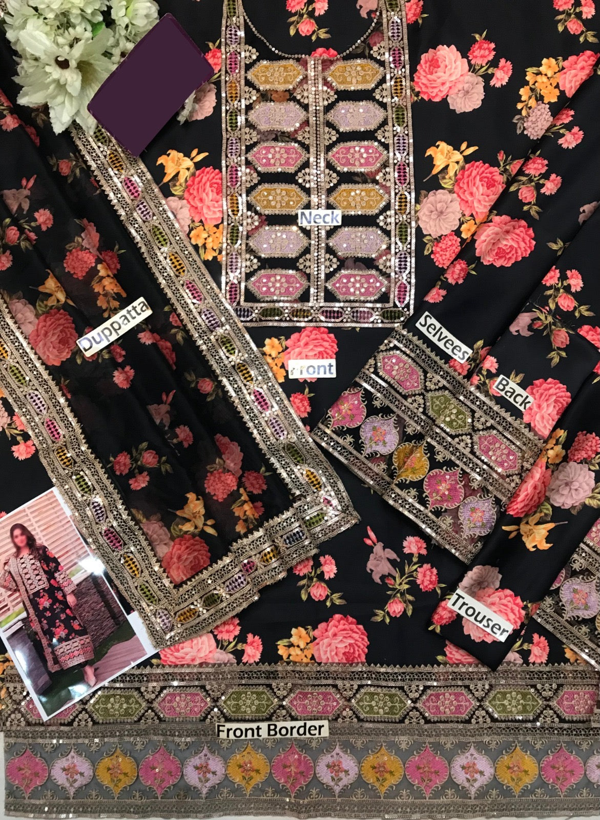 ▪️Heavy Embroidered Silk Dupatta with 04 Sides Cut work Border on Fabric