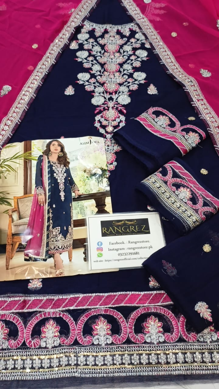 Maahru & Noorie by Asim Jofa Unstitched Embroidered 3Pc Suit AJSM-09