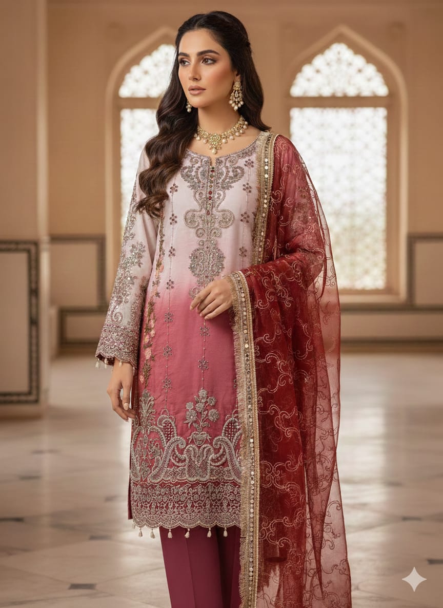 Benchmark Luxury Pret Organza Collection 3 piece Unstitched