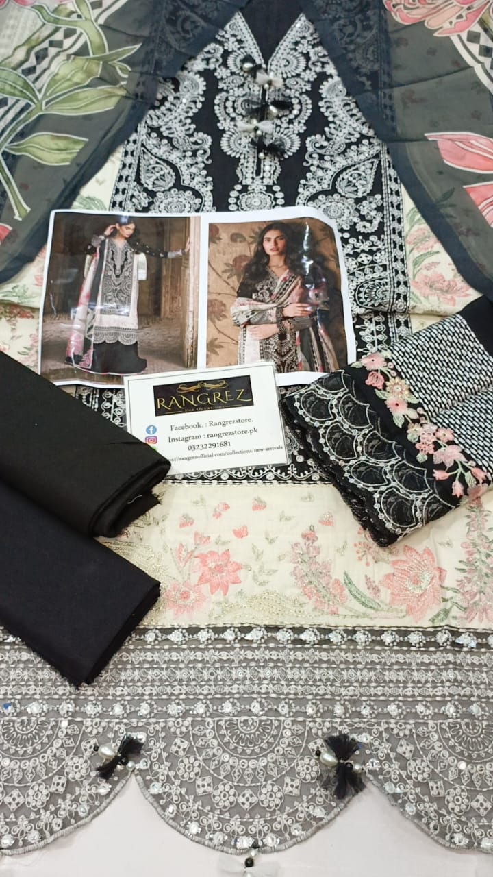 Bin Ilyas Luxury Lawn Embroidered Chikan kari 3 Piece Unstitched.