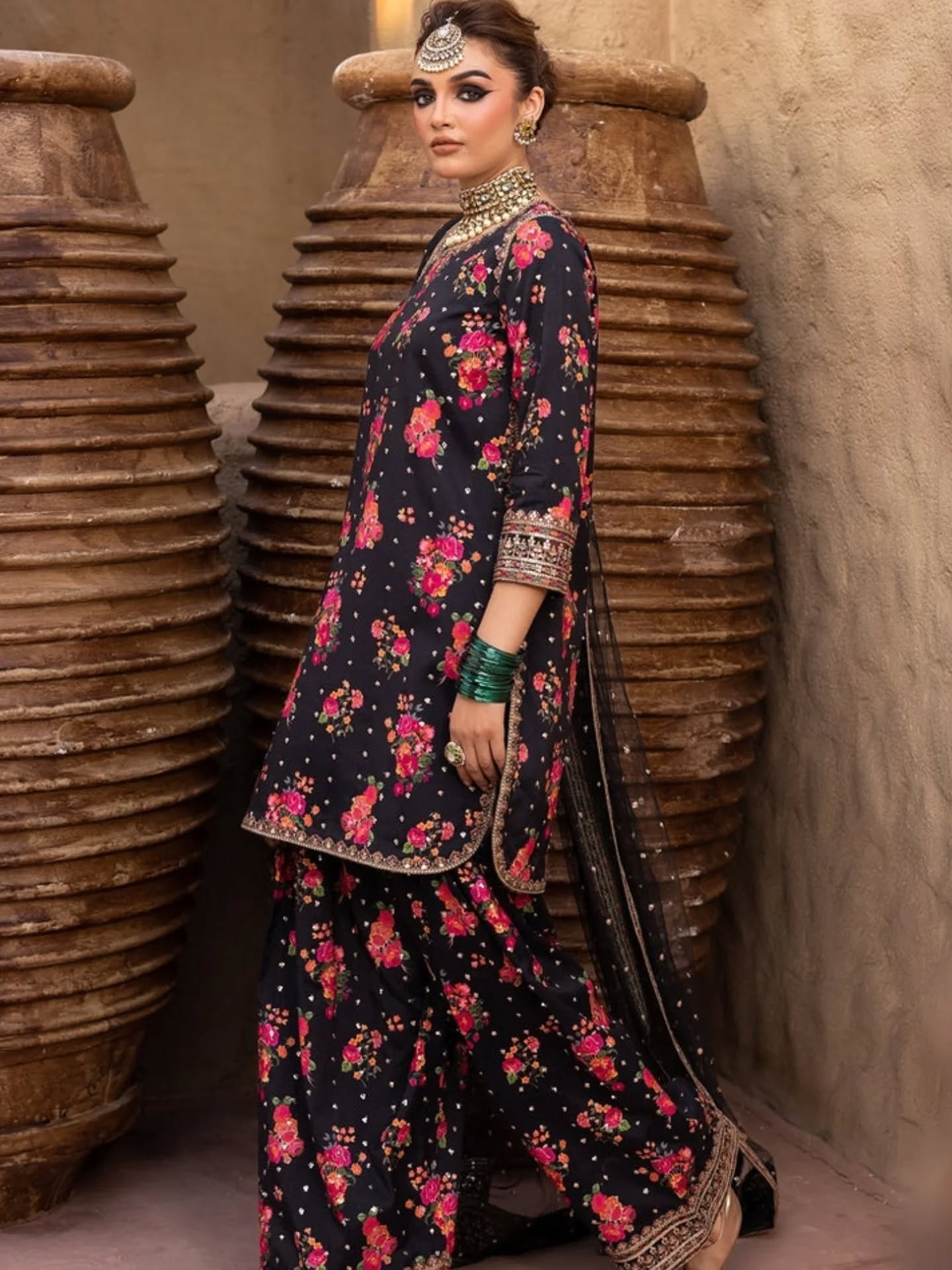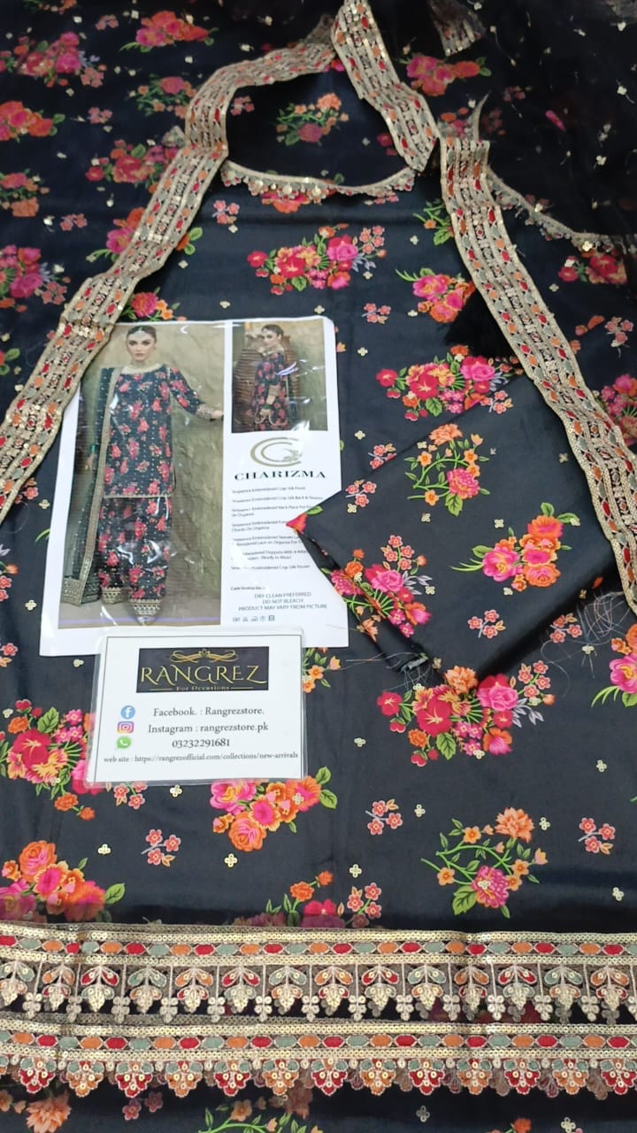 Charizma Black Multi Embroidered Luxury Silk 3 piece Unstitched / Stitched