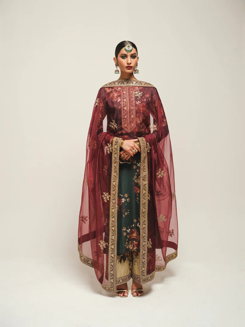 Humjoli Embroidered Dark Green Luxury lawn 3 Piece Unstitched