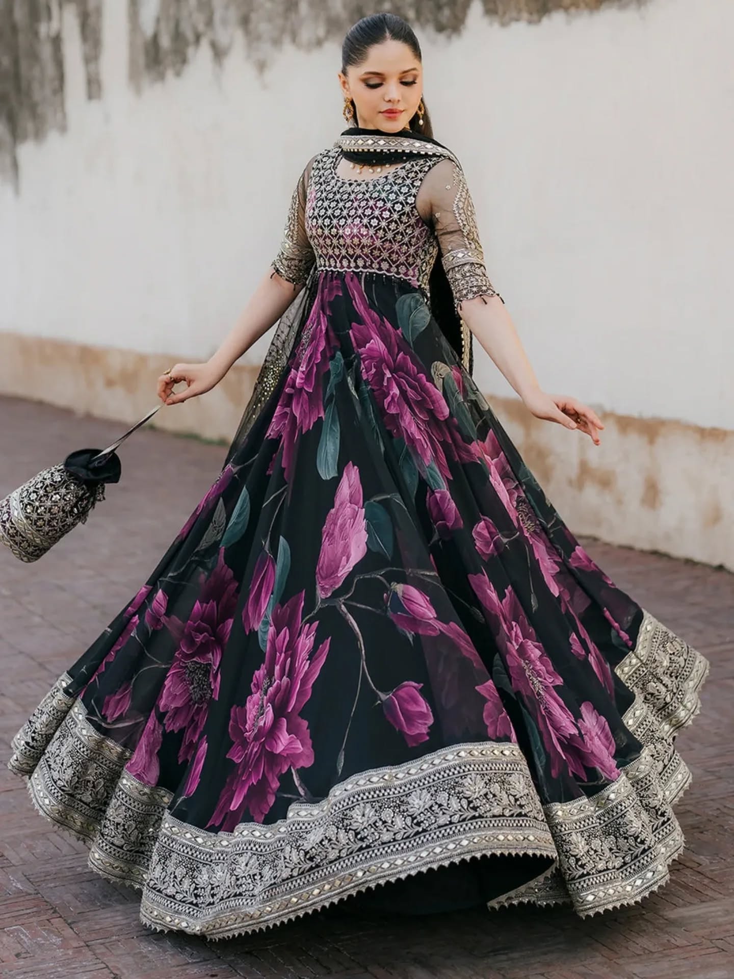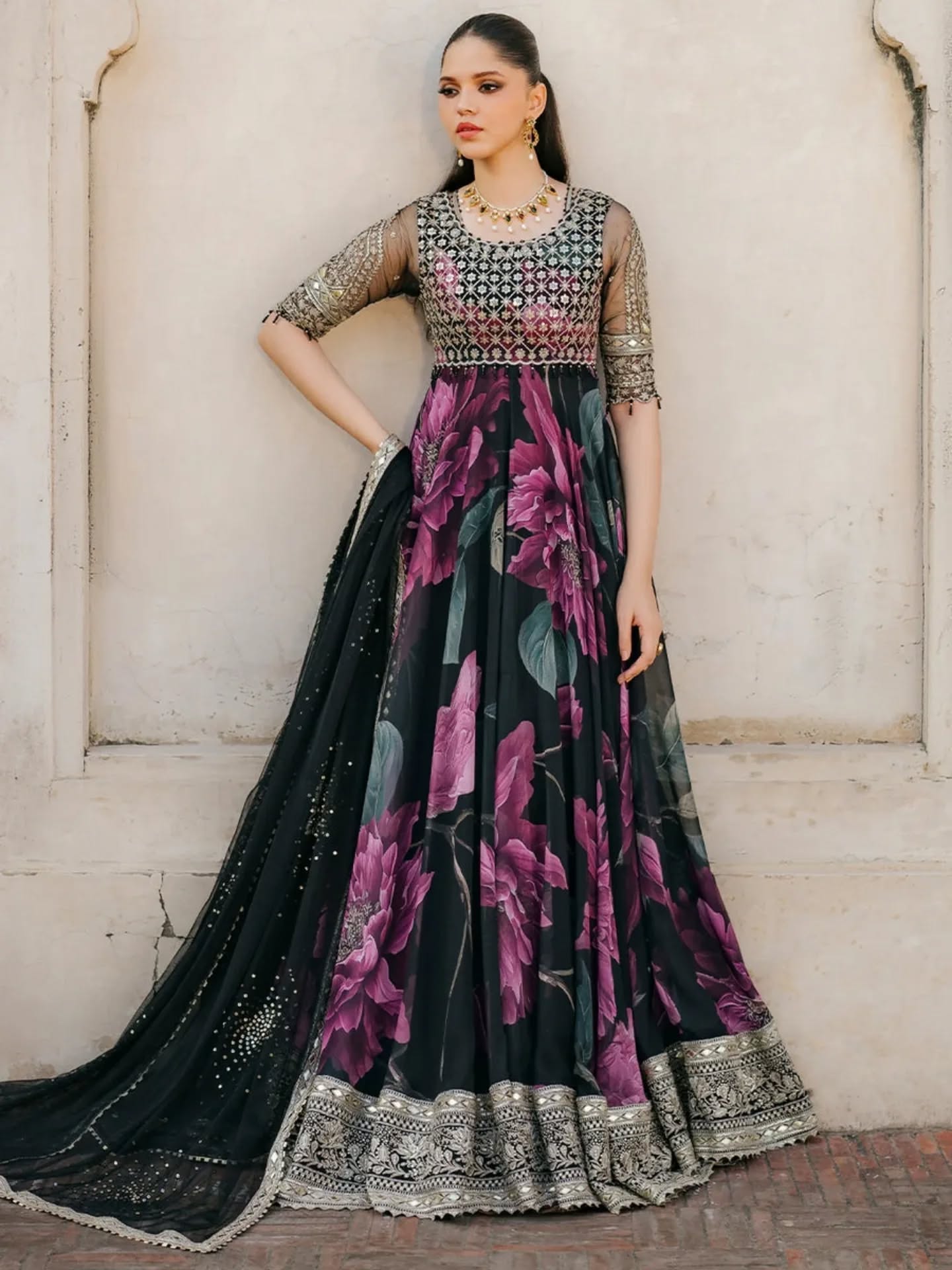 Iznik Chiffon Embroidered & Digital Multi Print Maxi Unstitched