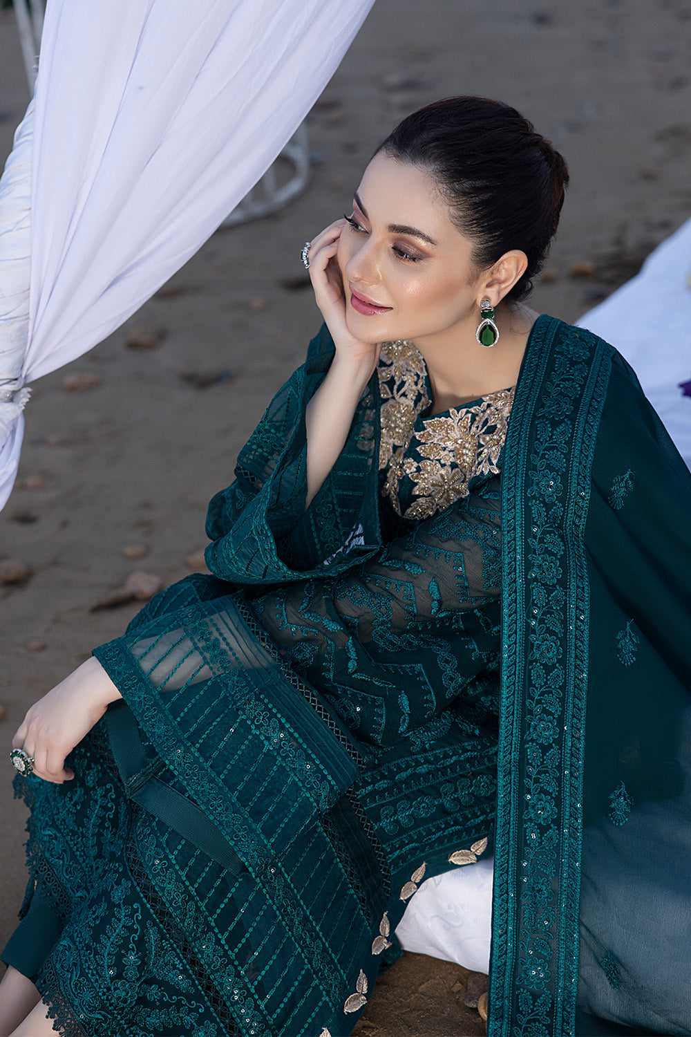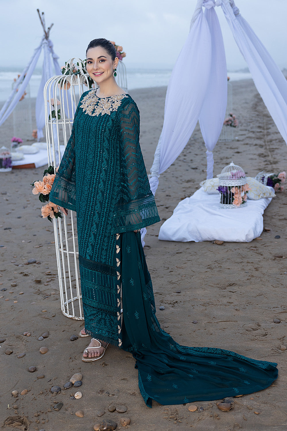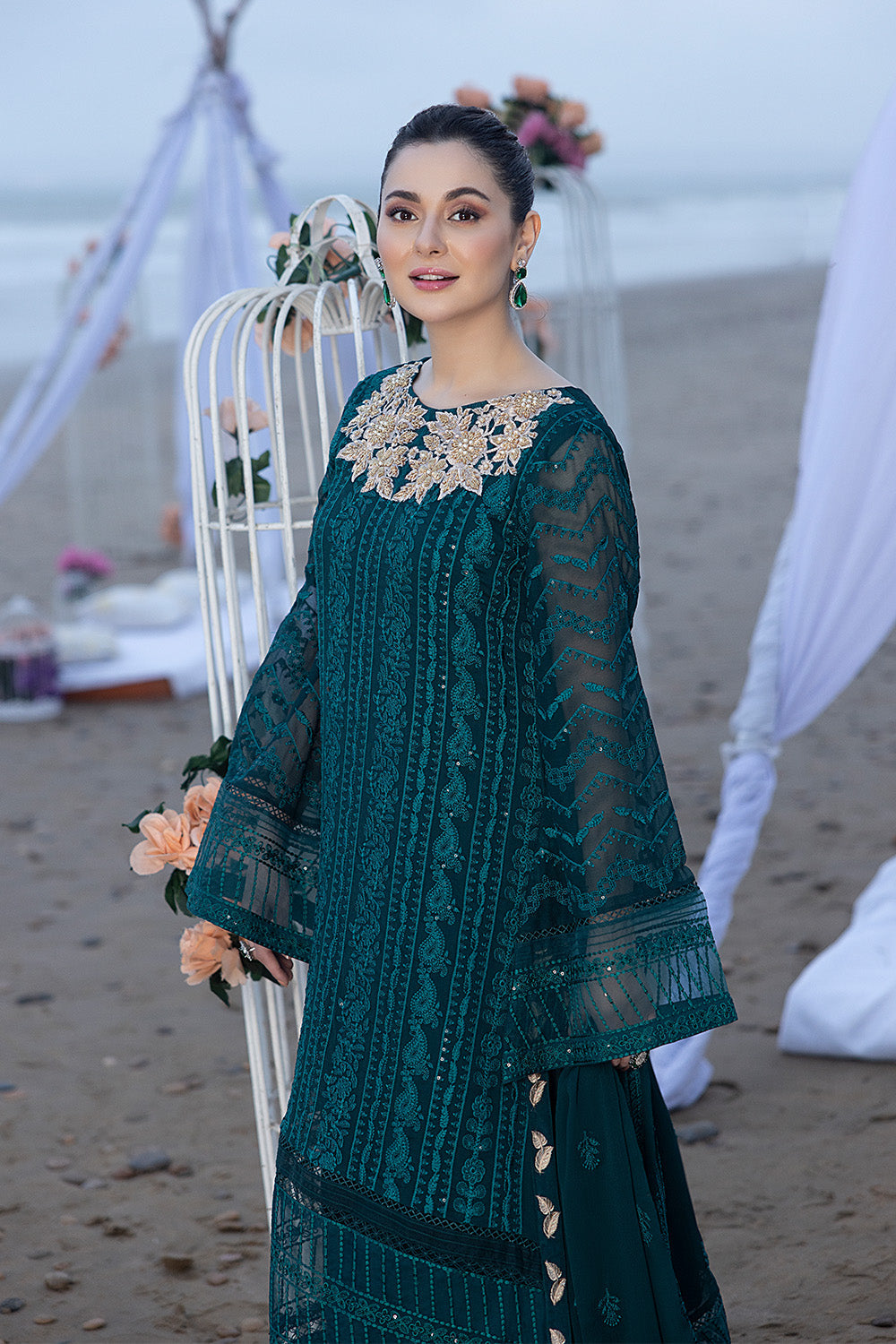 •Chiffon Embroidered Sleeves & sleeves embroidered border