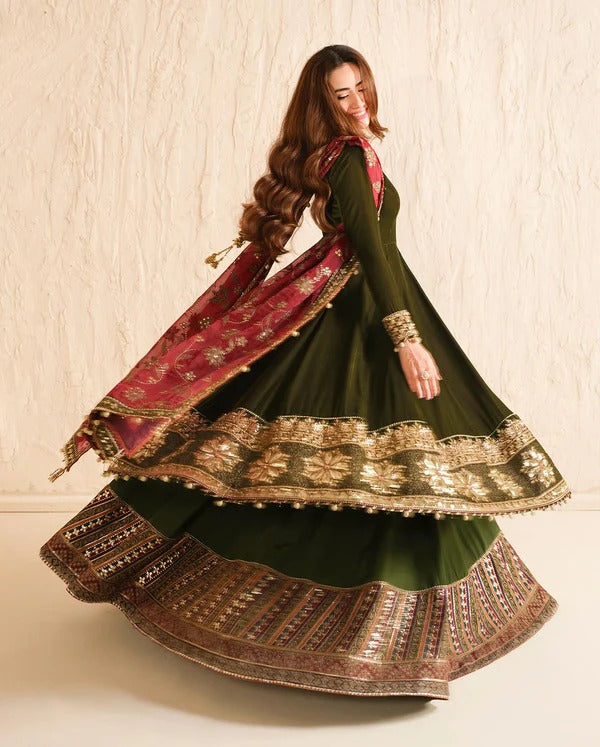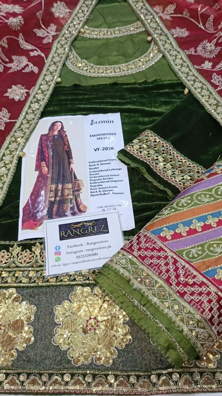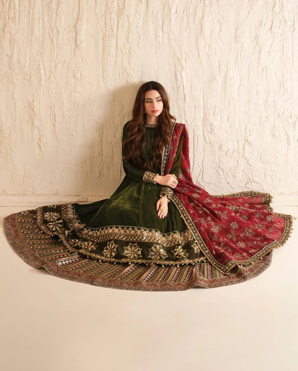 Jazmin Luxury Velvet Dress Embroidered 3 Piece Unstitched - Makhmal Royal Velvet Collection
