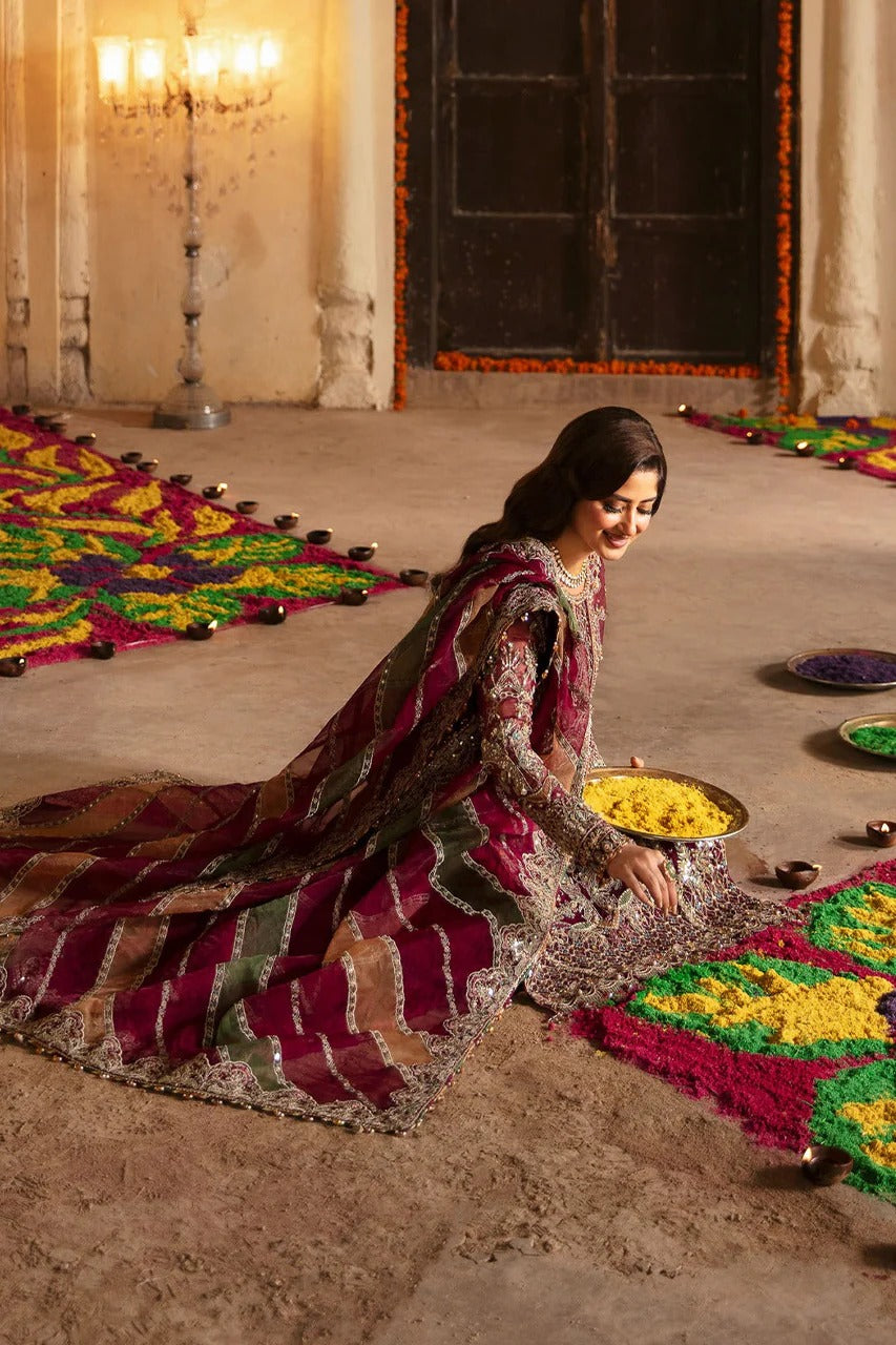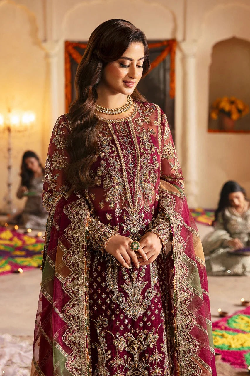 Kanwal Malik Maroon Formal Collection Net 3 piece Unstitched