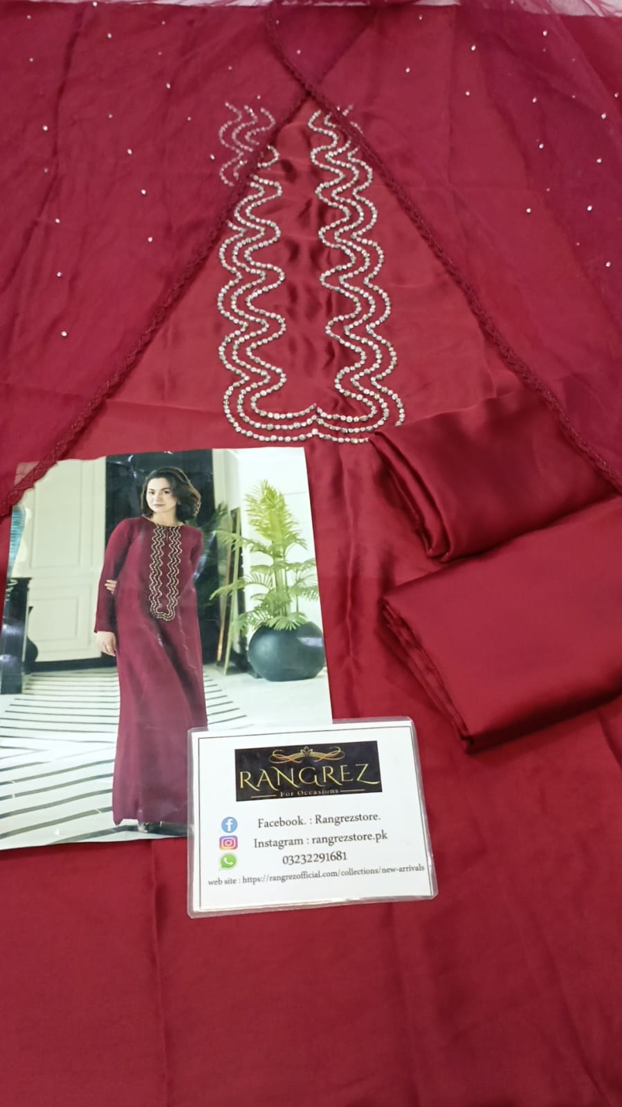 The Lulusar Luxury Silk Collection Embroidered 3 Pc Unstitched Samaal Long offers elegant, high-quality silk fabric that can be tailored to your exact style. Featuring delicate embroidery, this unstitched set lets you create a personalized outfit while enjoying the smooth, luxurious feel of silk. Perfect for special occasions, it combines timeless beauty with the freedom to customize your fit and design