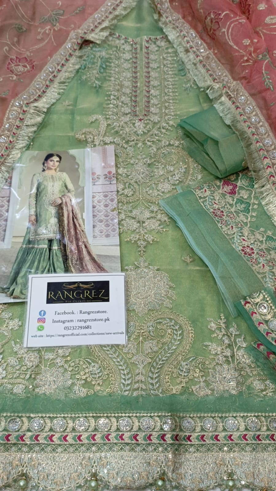Mehsori fully heavy embroidered spengle work front with heavy embroidered spengle work daman boarder with fancy tulses attach with embroidered spengle work & heavy adha emblishment work neck