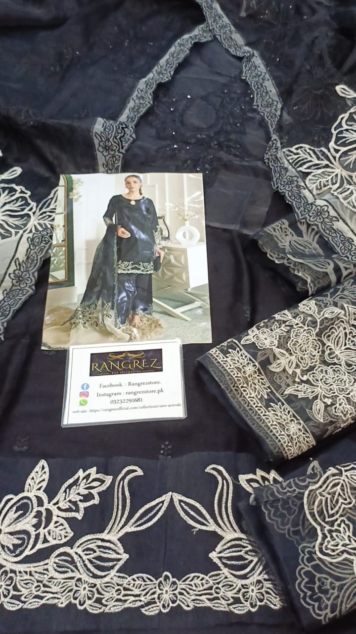 Chiffon fully embroidered spangle work front with embroidered spangle work neckline with heavy embroidered spangle work chak bunches with heavy embroidered spangle work daman border