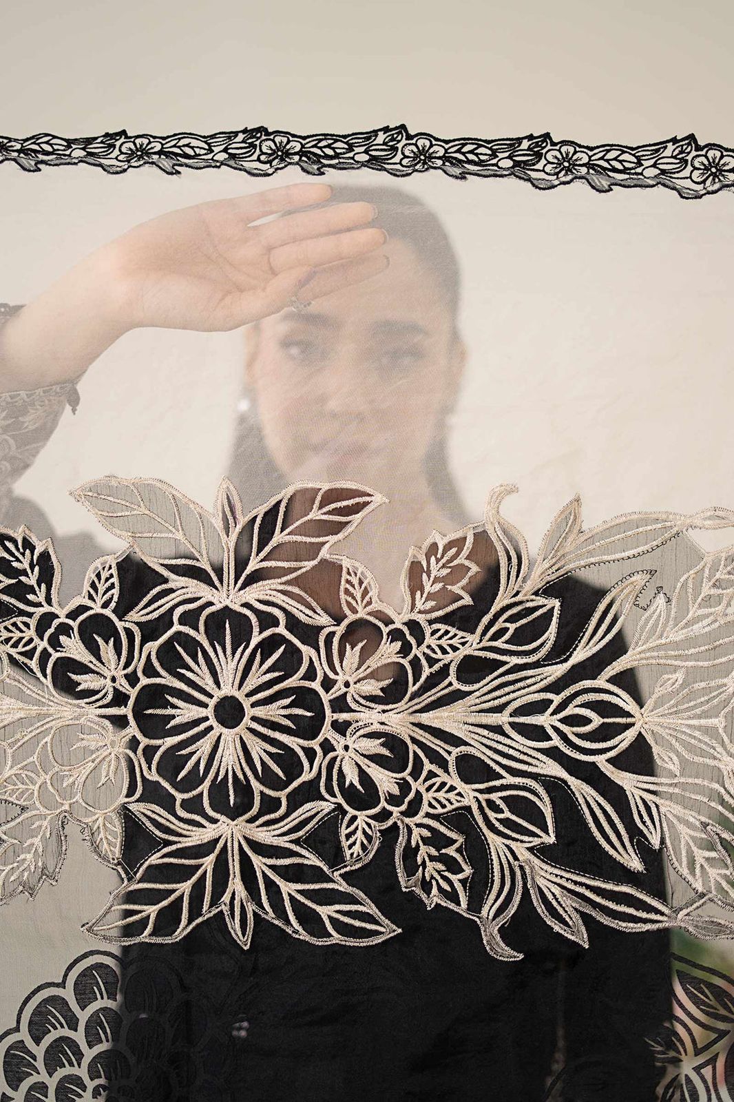 Chiffon embroidered spangle work back with heavy embroidered spangle work back daman border