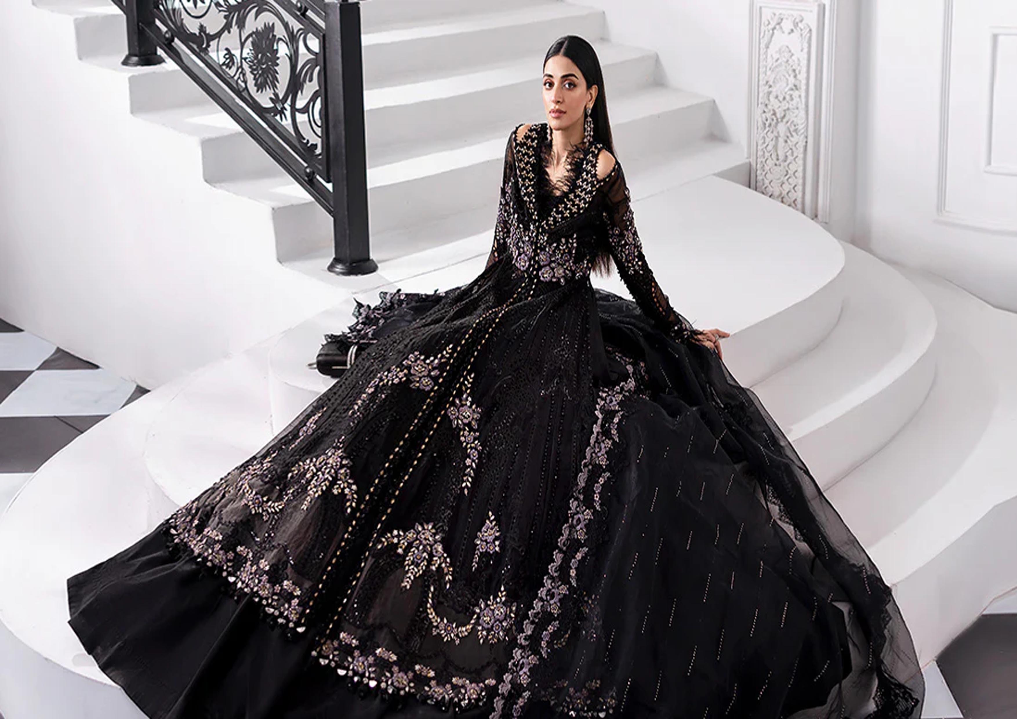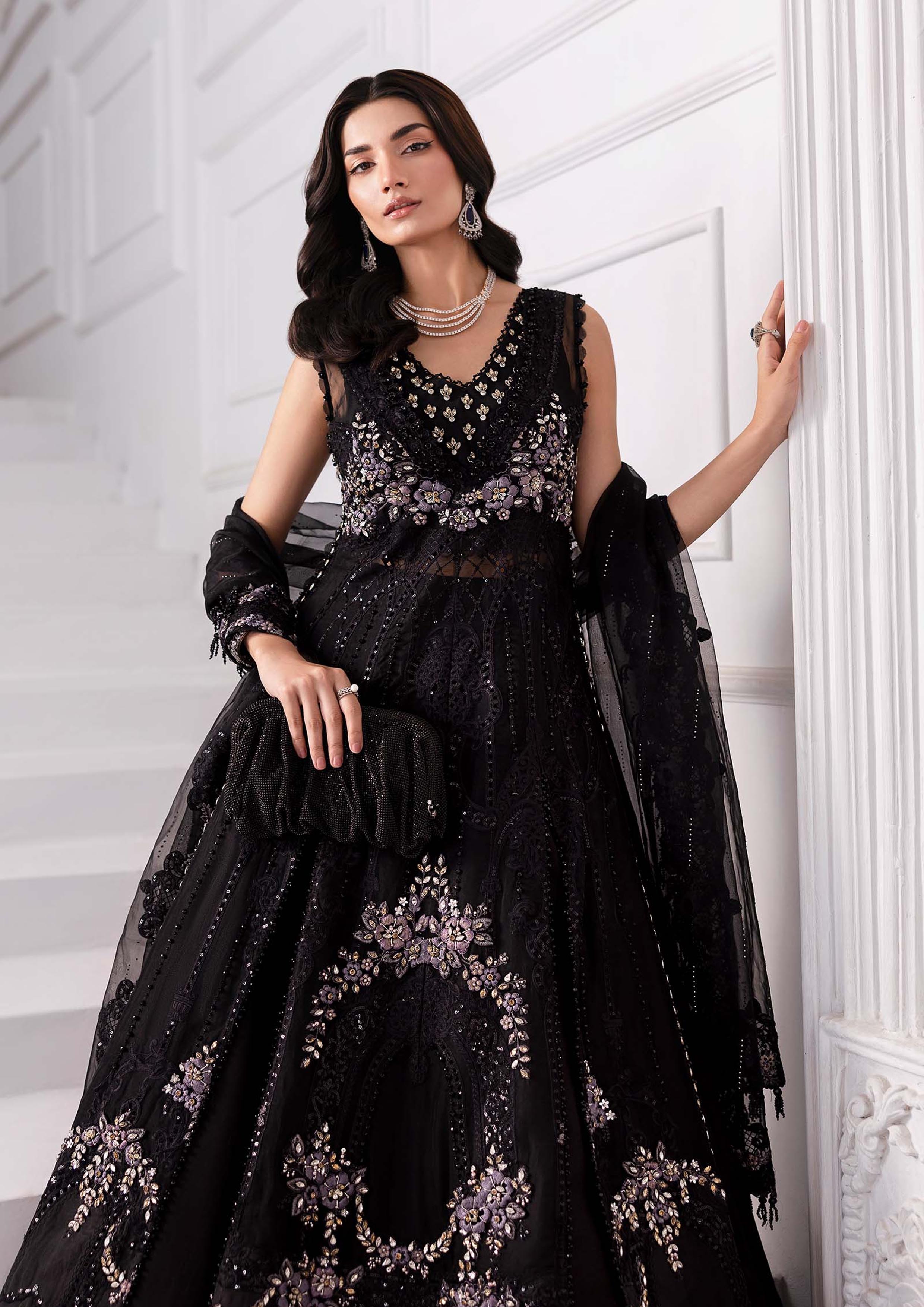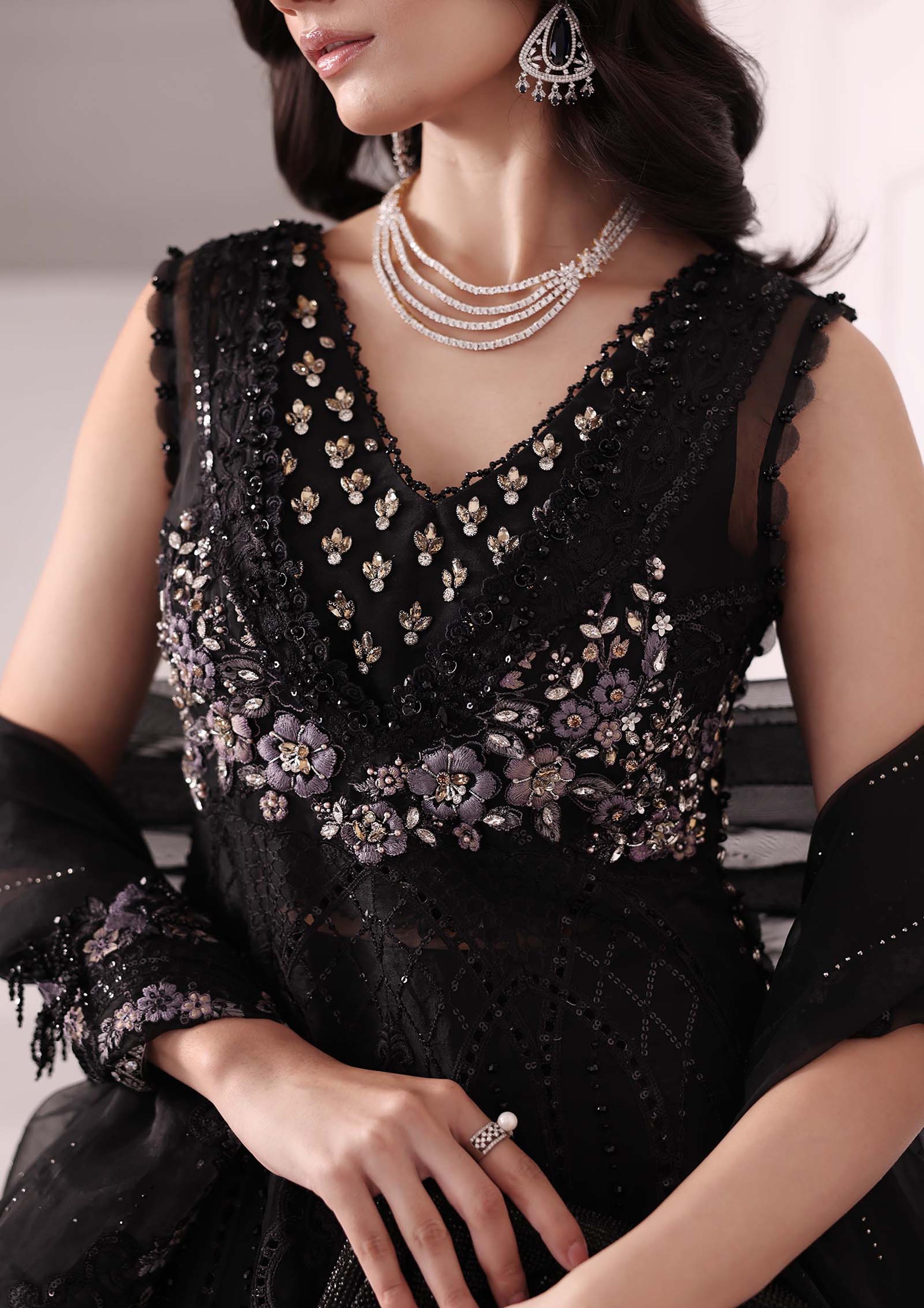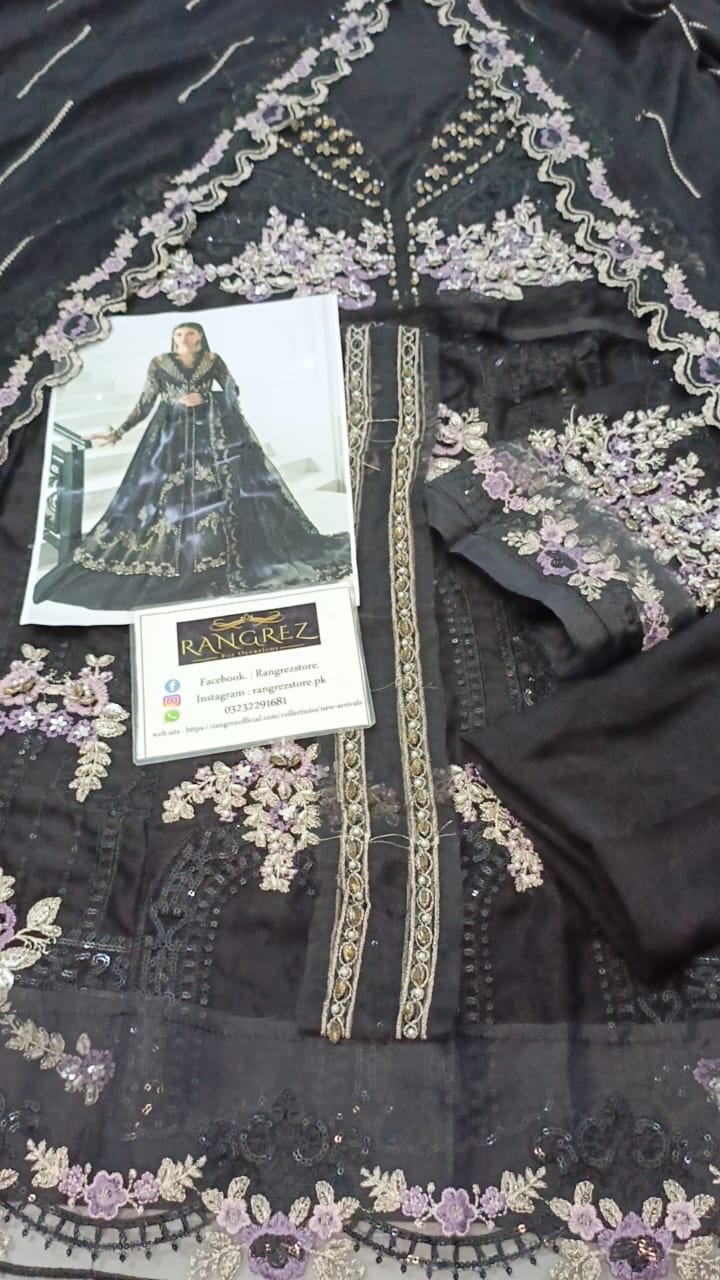 chiffon fully embroidered spengle work frouk centre panel with fully hand emblishment adha work with fully hand emblishment centre lace with heavy embroidered spengle work 6 kalli attach with fully hand emblishment adha work with heavy embroidered spengle work daman boarder