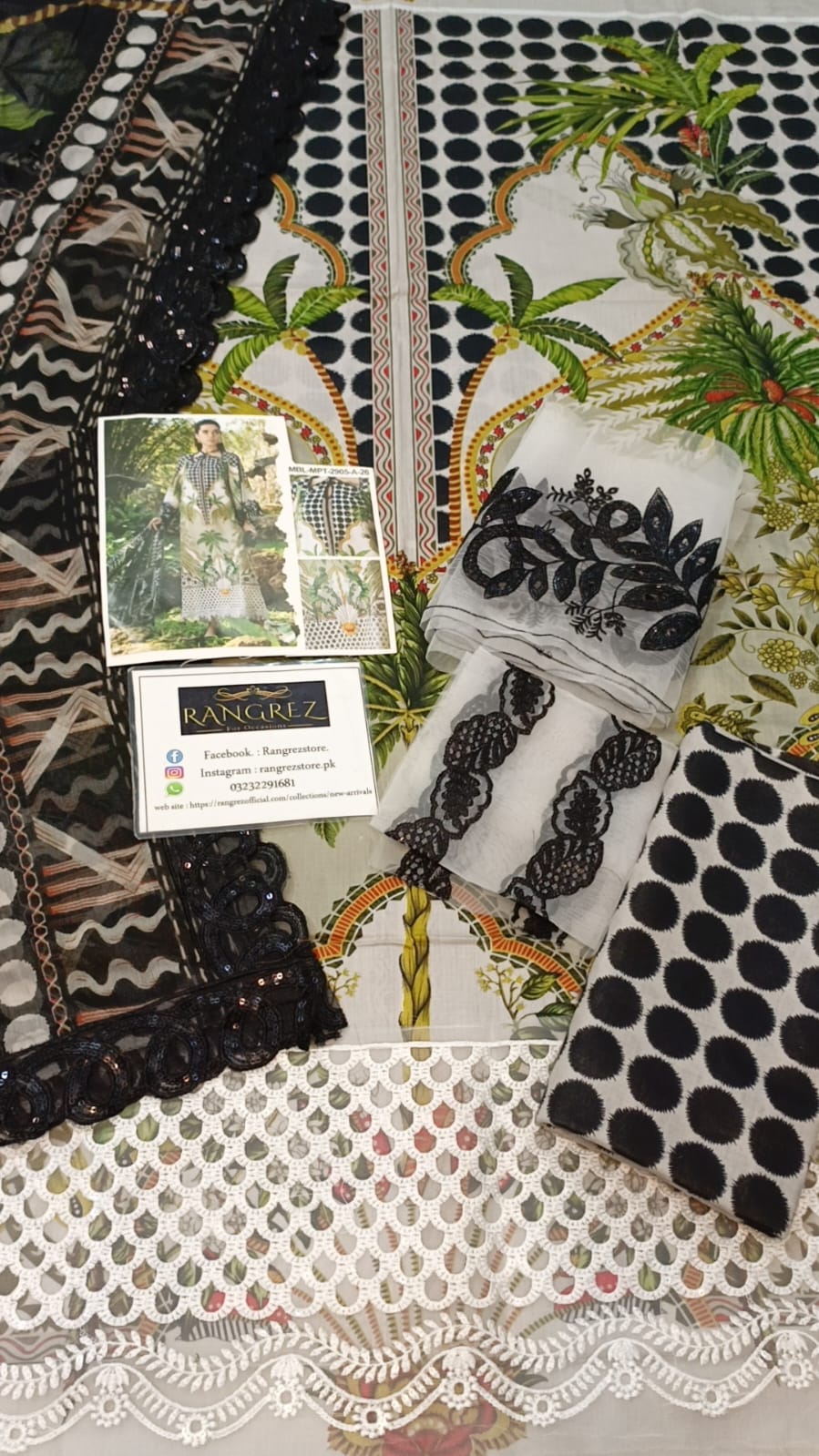 printed lawn front with heavy embroidered spengle work daman boarder with embroidered spengle work chak lace
