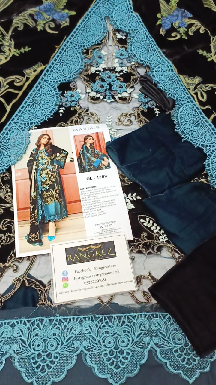 Maria B Luxury Velvet Dress Embroidered 3 Piece Unstitched