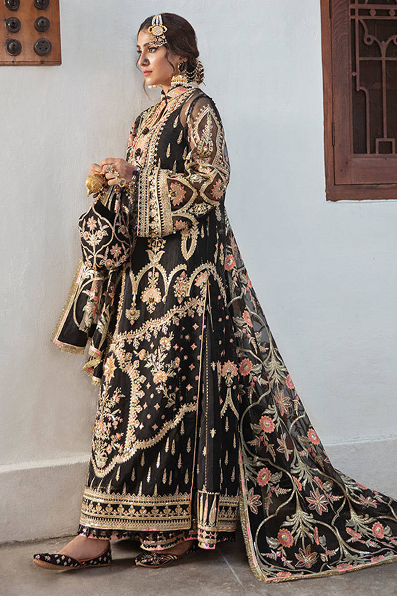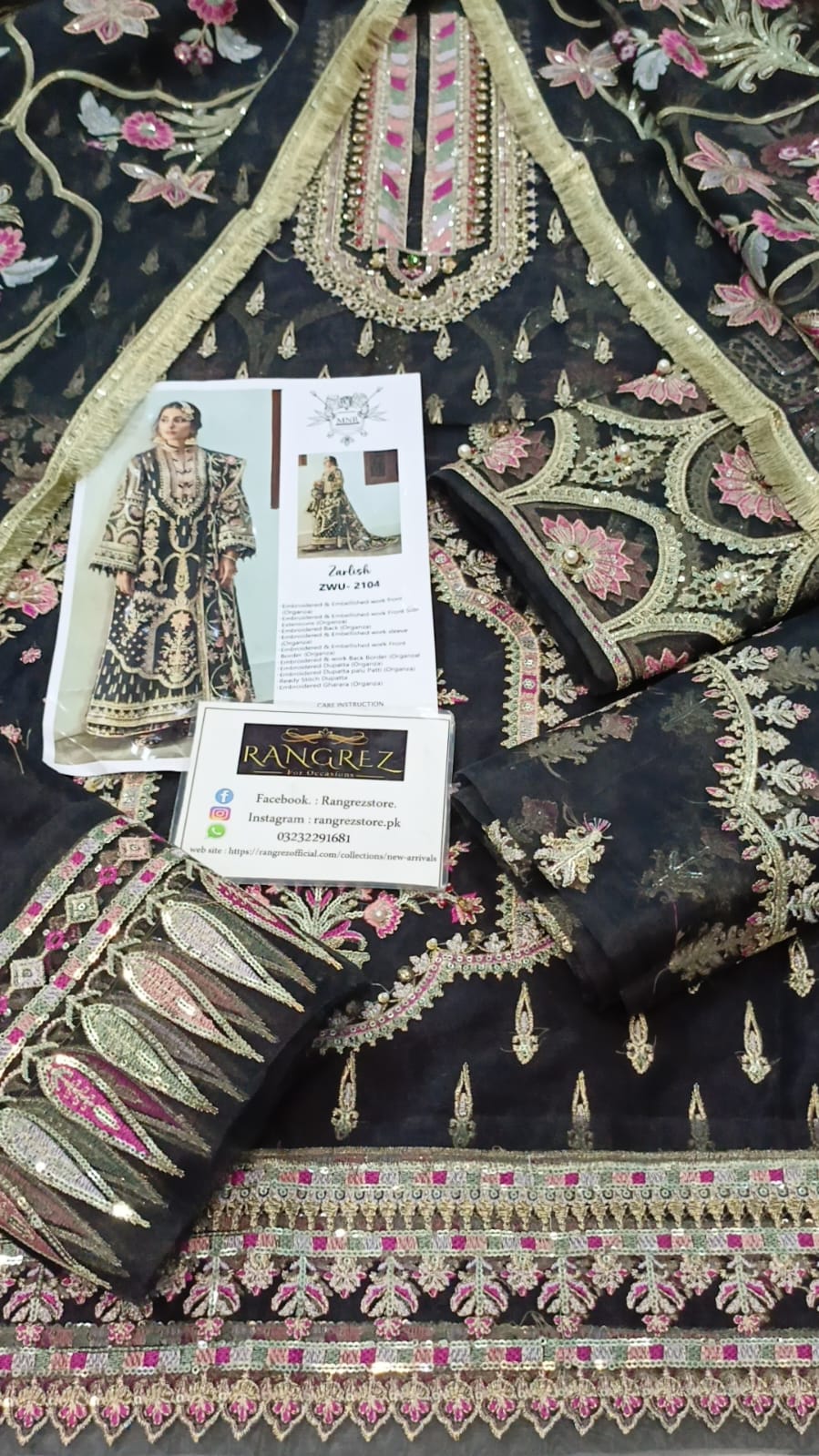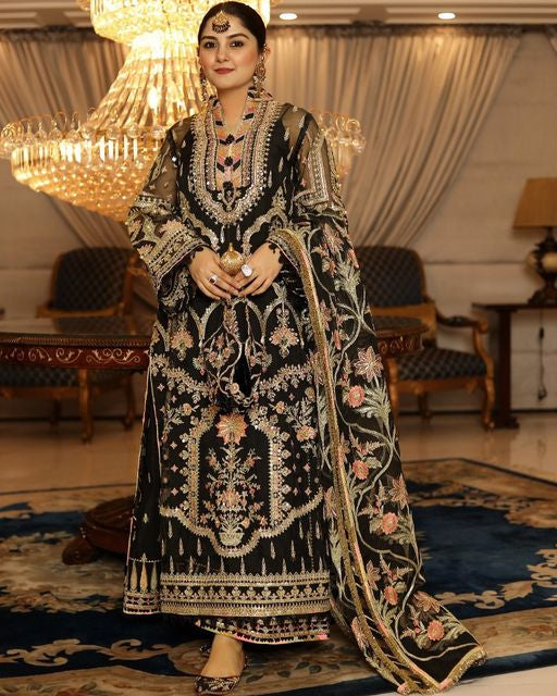 Mohsin Naveed Ranjha Black Full Embroidered & Hand work Organza Dress 3 Piece Unstitched