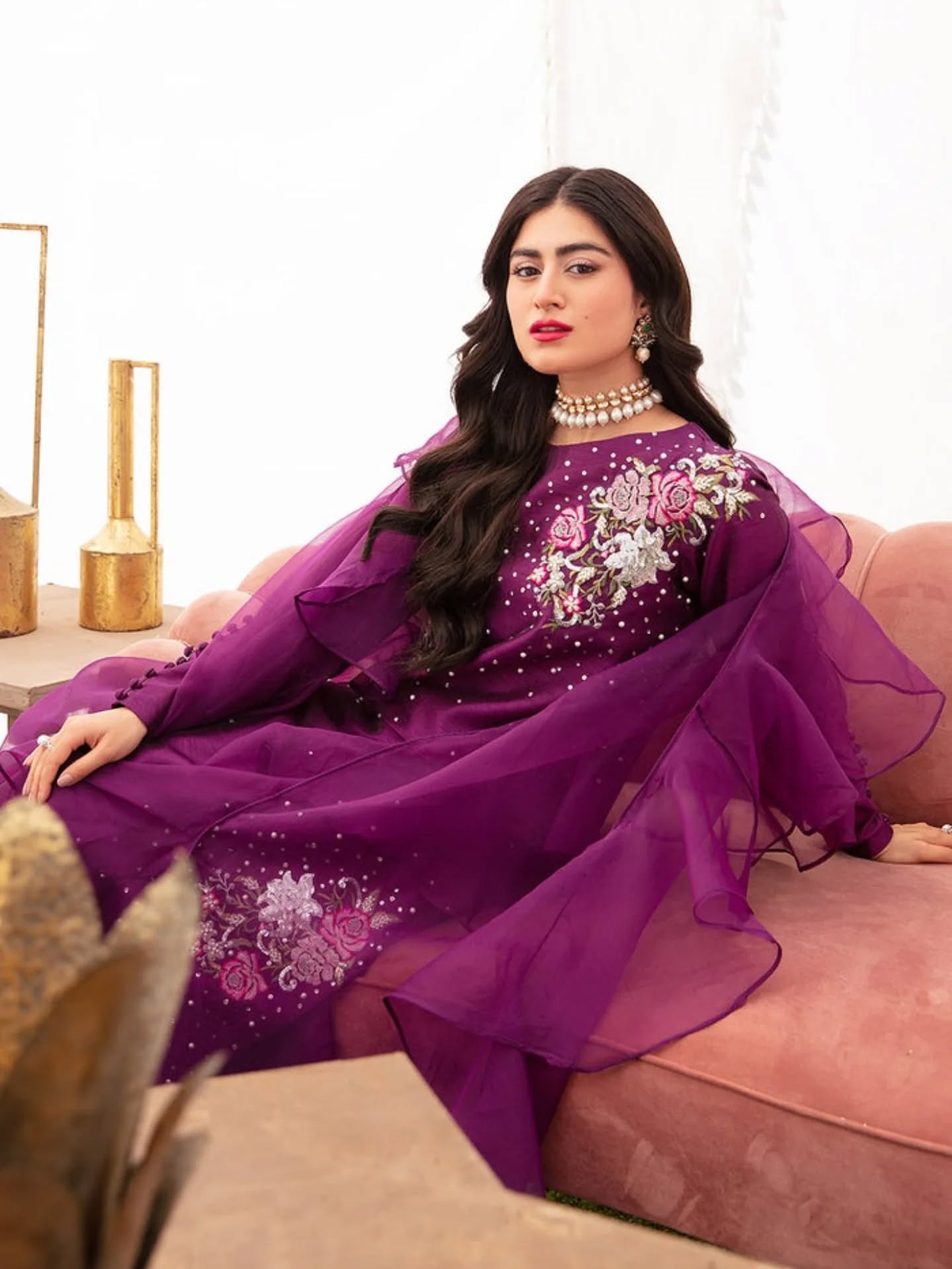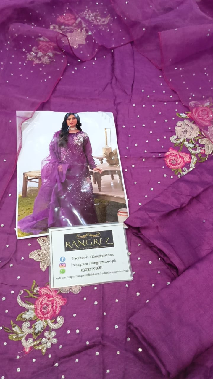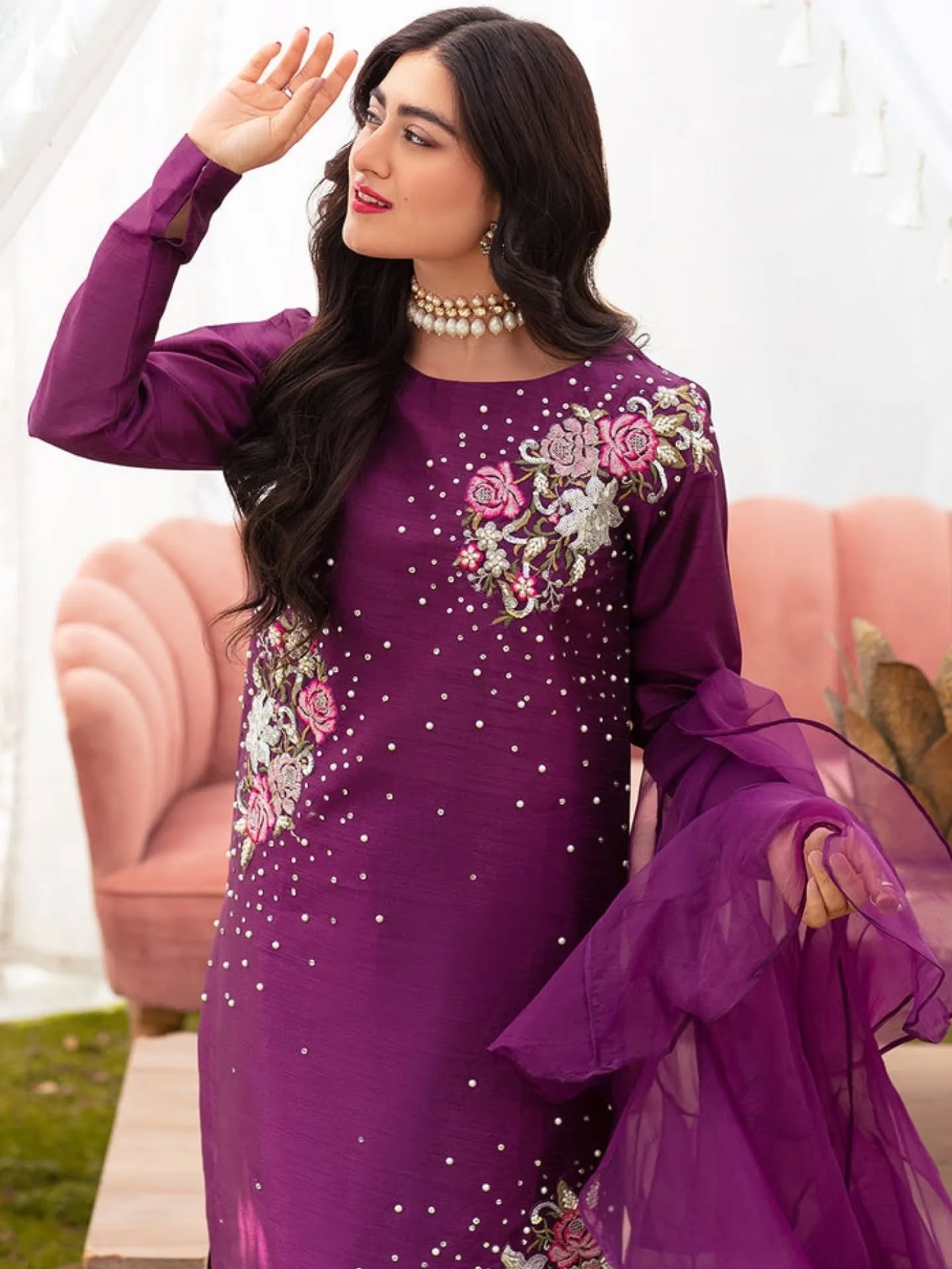 Vanya Purple Formal Collecion Raw Silk Embroidery 3piece Unstitched